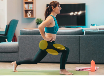 - 밴드를 무릎 위에 두르고 스쿼트나 사이드 스텝을 합니다.
