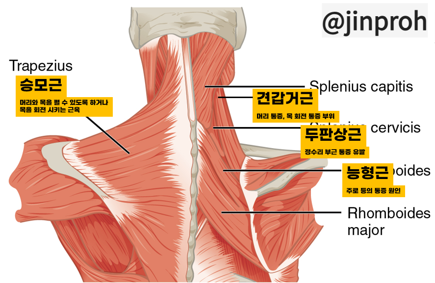 - 위치: 목 뒤에서 어깨와 등 상부로 연결.