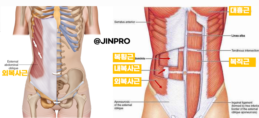 👀 복근이라고 하는 것은 복직근, 외복사근, 내복사근, 복횡근으로 구성된 근육을 말합니다.