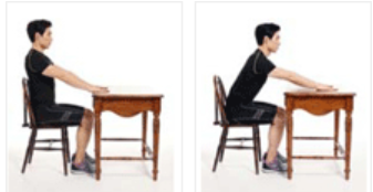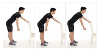- 테이블이나 의자에 건강한 쪽 손을 짚고 상체를 앞으로 기울입니다.