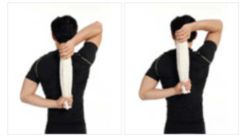 - 건강한 팔을 위로 올려서 수건을 잡아당깁니다.