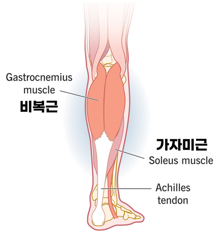 - 종아리는 두 개의 주요 근육인 비복근(Gastrocnemius)과 가자미근(Soleus)으로 이루어져 있습니다.