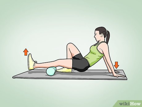 - 바닥에 앉아 폼롤러를 종아리 아래에 두고 다리를 펴줍니다.